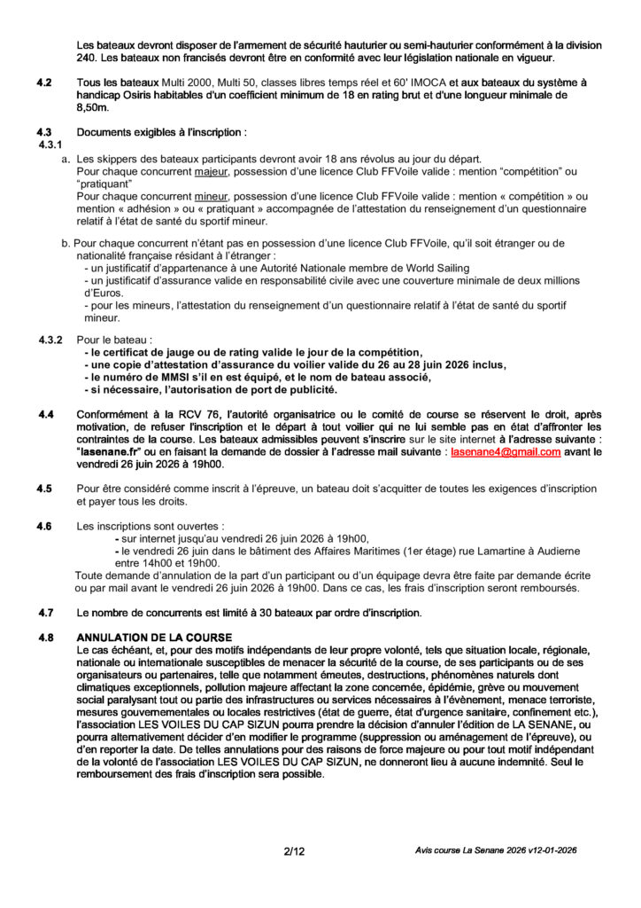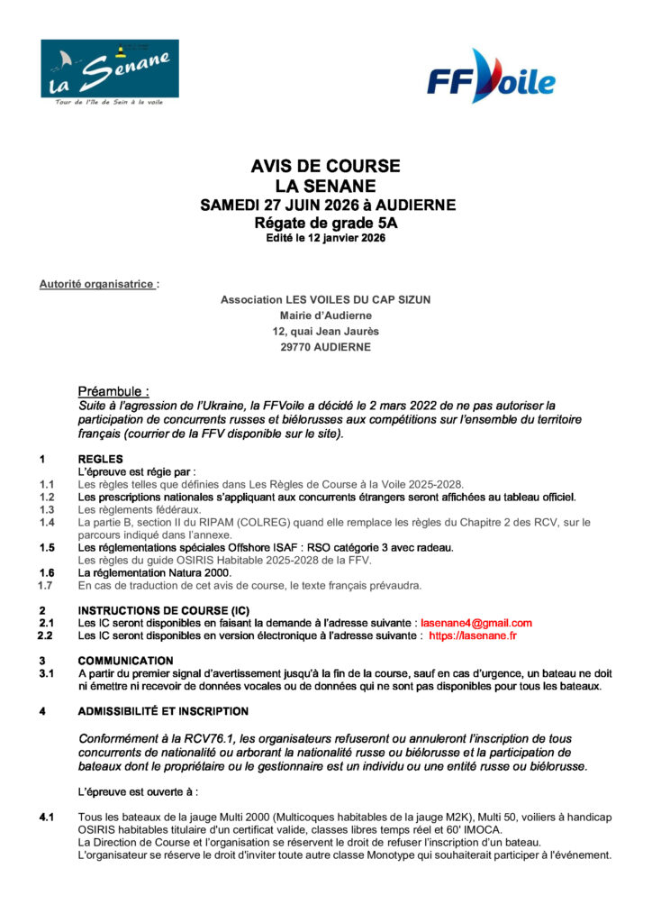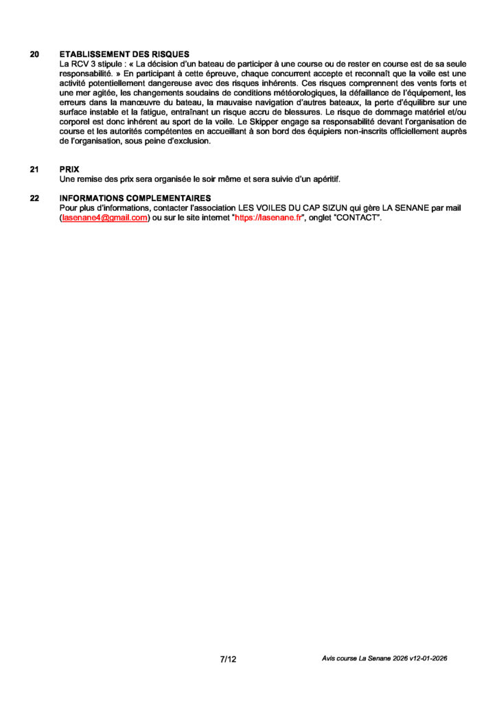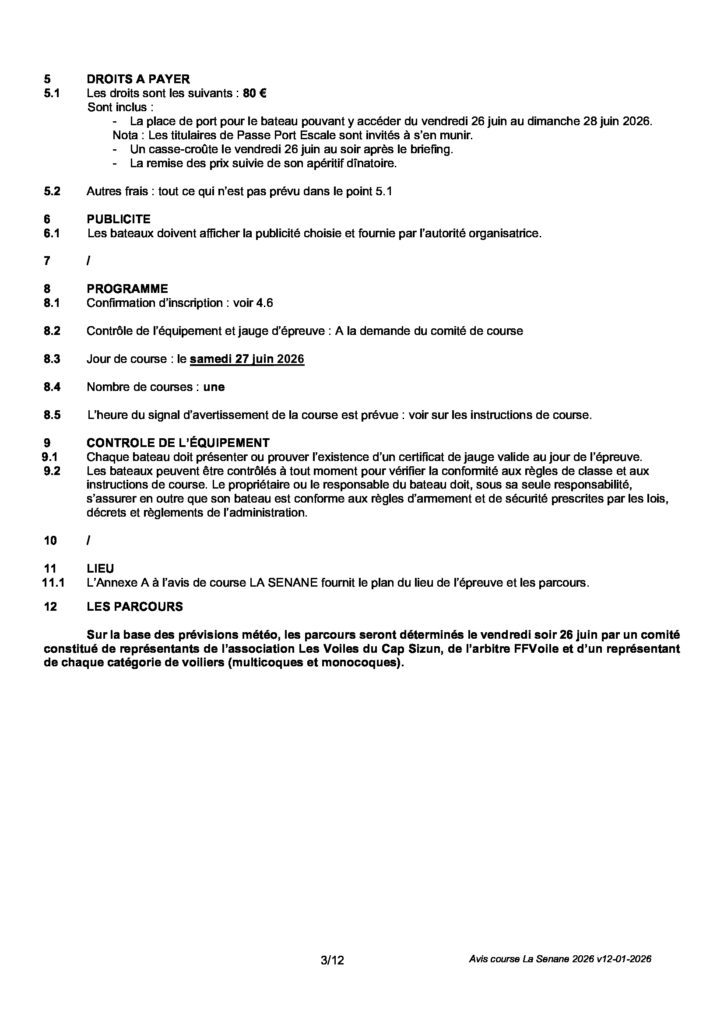 AVIS DE COURSE LA SENANE 2026